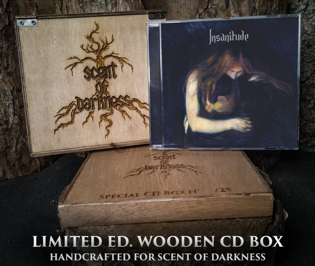 The wooden box edition of Insanitude is one of the most visually striking, and quite frankly beautiful pieces of physical media I’ve ever seen. It was limited to 25 copies, handcrafted by Jacopo Marinelli of Eurynome, laser-engraved with the band logo, hand-numbered, each one unique. For a debut EP from an underground project, that’s an unusual level of investment in the physical object. What was the thinking behind it?